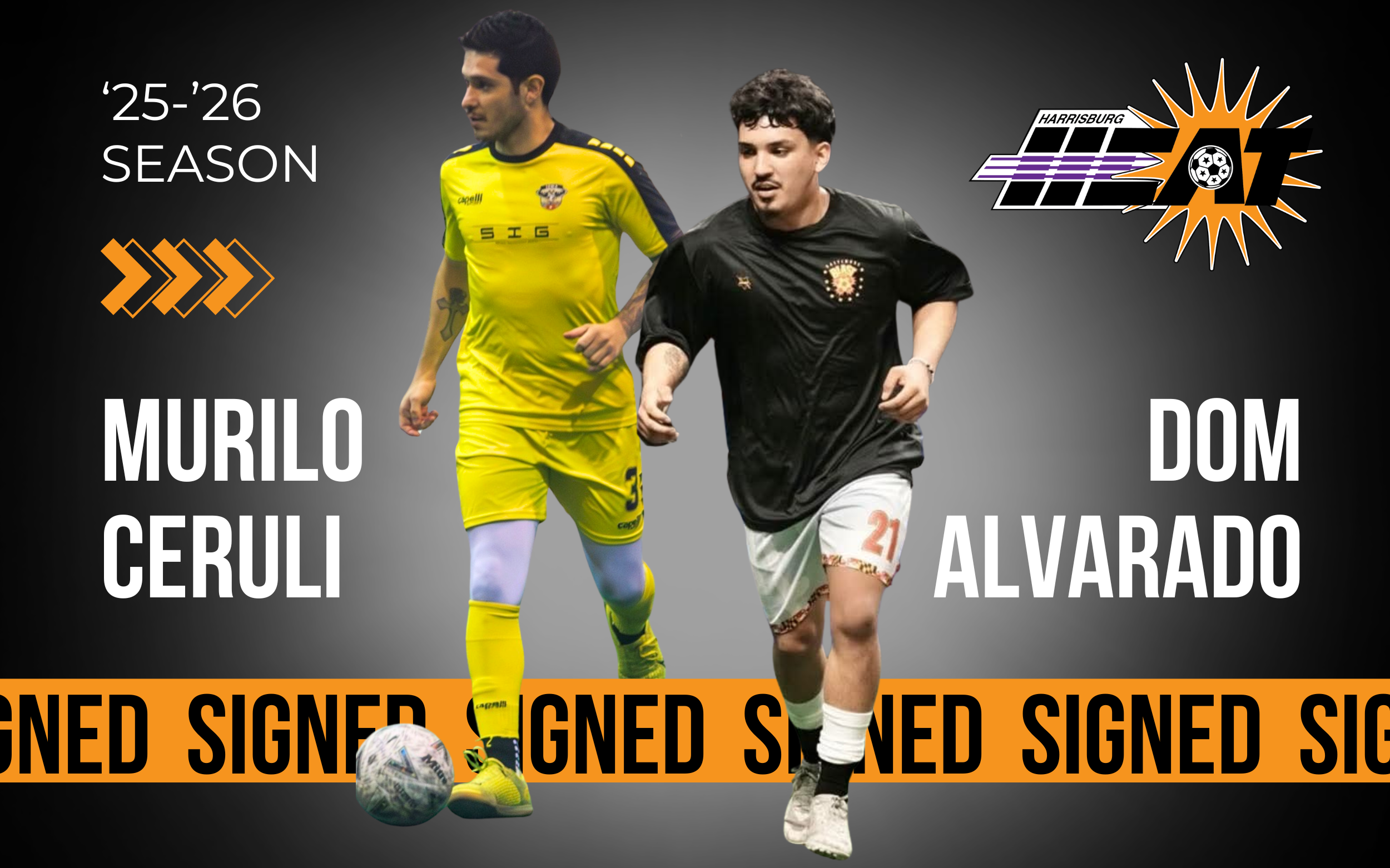 The Harrisburg Heat are proud to announce the signings of two dynamic players to the roster for the upcoming Major Arena Soccer League (MASL) season: defender Murilo Ceruli and forward Dominique “Dom” Alvarado.